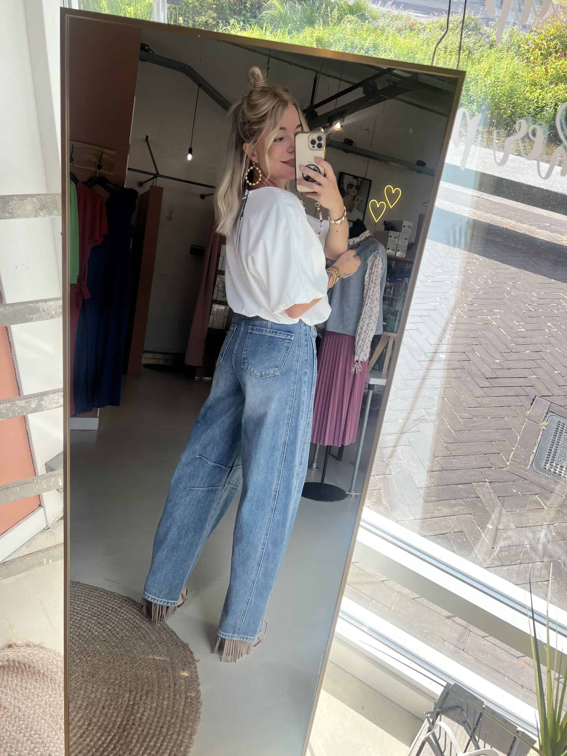 Deze broek is de nieuwe fit. Een barrel jeans die een lengtemaat 33/34 heeft. Je kunt hem prima afknippen naar een lengte maat 31/32