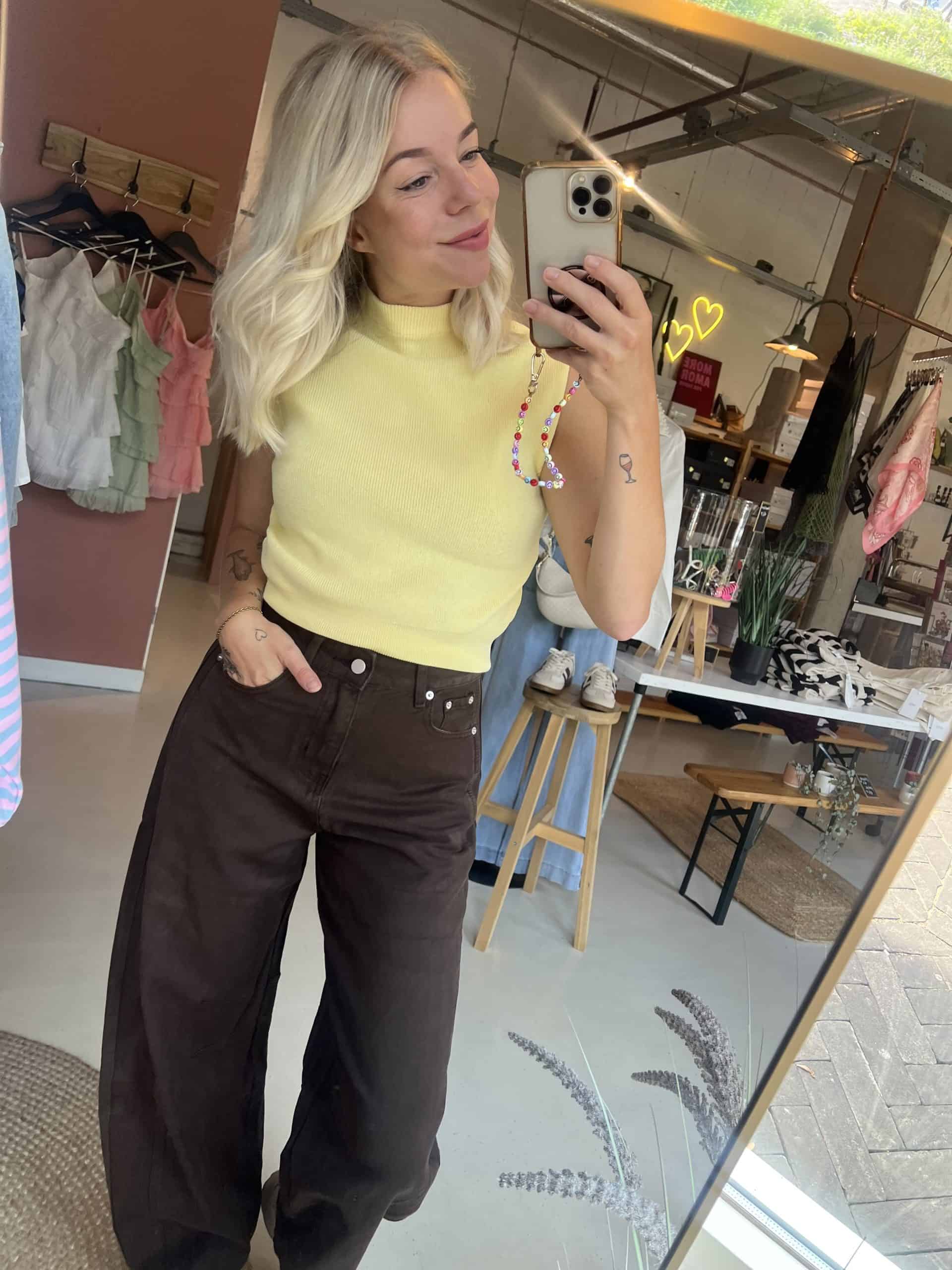Deze van 70 procent viscose top heeft een boordje en is mega leuk onder een blouse of jasje te combineren. Ook zonder iets is hij heel gekleed door de leuke mouwtjes